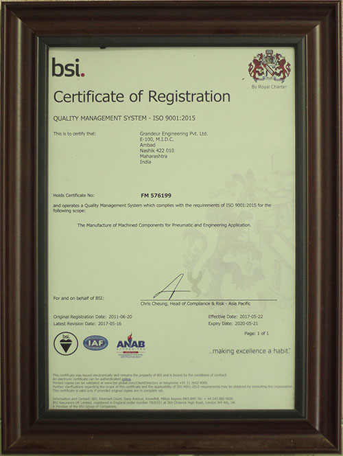 Grandeur Engineering Pvt.Ltd.(ISO 9001: 2015) is manufacturing and supply of Pneumatic Components, Machining Jobs established in 2007 located at MIDC Ambad, Nashik. Grandeur Engineering is specialized in the machining of Pneumatic Components, Machining job OEMS & Exports.