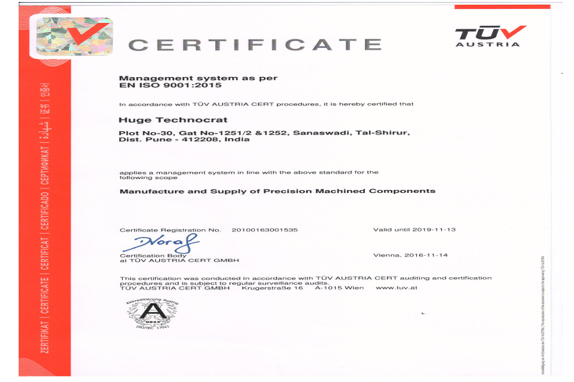 M/s Huge Technocrat Registered Partnership Firm is established on 11th April 2016, by Mr. Santosh Patil of Nashik & Mr.Sanjay Gugale of Ahmednagar, with the idea and evolution to change manufacturing in engineering components with use of new advanced technology. These are the expert persons in their area. (Hereafter M/s Huge Technocrat refereed as “Huge”).